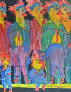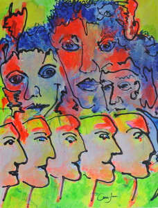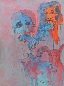 Een combinatie tussen fantasie en wekelijkheid dat zijn de elementen waaruit de schilderijen bestaan. Werk dat wordt bepaald door herinneringen, beelden uit de omgeving of gewoon uitbarstingen met als kenmerk de interactie tussen vorm en kleur.